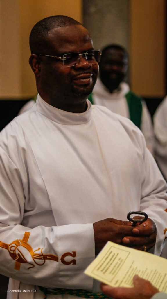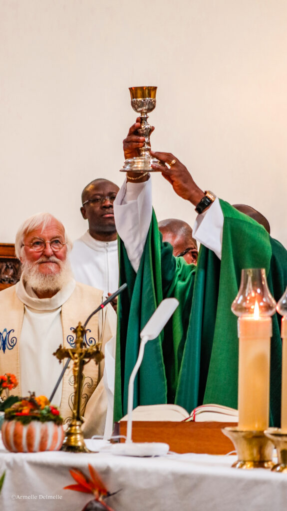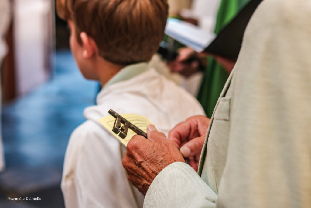 Après ces deux gestes l’introduisant solennellement dans les deux pôles temporel et spirituel de sa nouvelle responsabilité, l’abbé Yves est monté vers l’autel en compagnie des acolytes et de ses amis prêtres, porté par les chants joyeux et le regard bienveillant des choristes, de l’assemblée et des membres de sa famille.