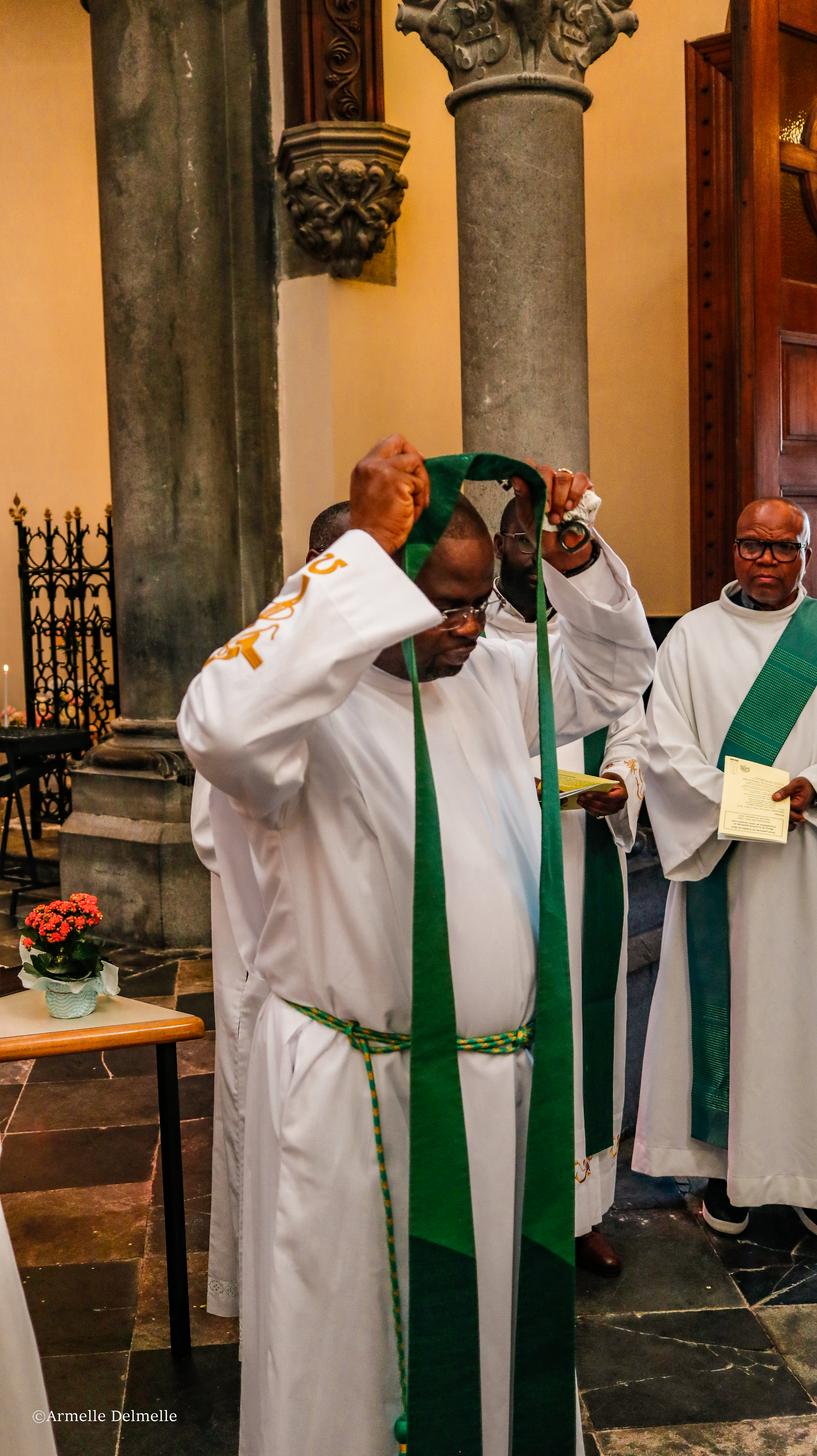La célébration s’est ouverte sur deux gestes symboliques : la remise des clés des sept églises de la paroisse par un représentant des fabriques d’église et la remise de l’étole, signe de la charge pastorale, par l’abbé José Gierkens, doyen de la Basse-Meuse.
